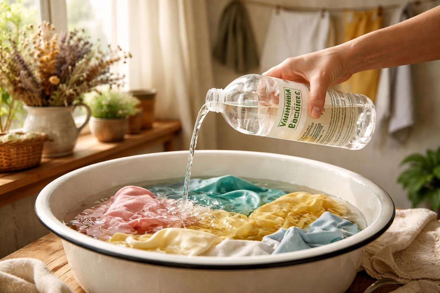 Textiles colorés Vinaigre blanc, laurier Javel