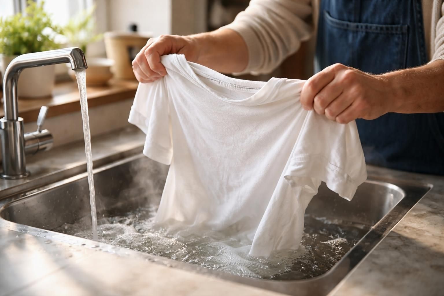 Cette méthode convient parfaitement aux lainages. Immerger votre vêtement dans de l’eau tiède avec un peu de savon doux, masser délicatement le tissu, puis rincer à l’eau froide. Cela permet de resserrer les mailles sans les feutrer.